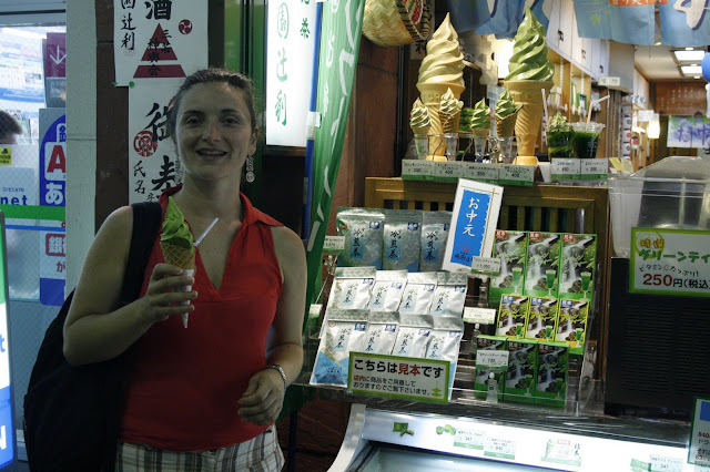 Dopo che a Kyoto ho assaggiato questa bontà, tornata a casa, non ho potuto fare a meno che procacciarmi ricetta e gelatiera. La ricetta me l'ha fornita il gastro blog di Kja Il Pranzo di Babette, la base almeno. Io l'ho un po' rivista utilizzando latte di riso e panna vegetale... ed ecco il mio prodotto! Era buonissimo anche se Nathan continua a dire che sa di erba marcia :) ... ma lui si sa, è un mangiapatate!